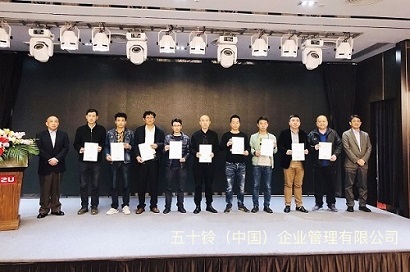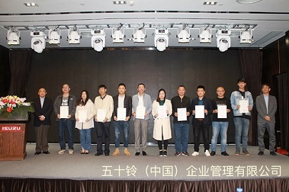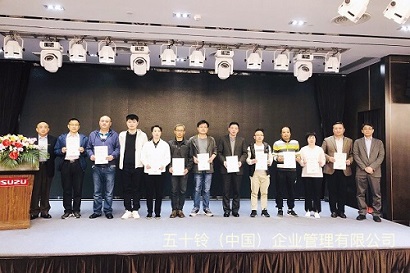 大会上由五十铃(中国)的中矢总经理、入内嶋副总经理向全体代理店颁发了2019年度的代理店认定证书。之后,还表彰了2018年度的优秀代理店。