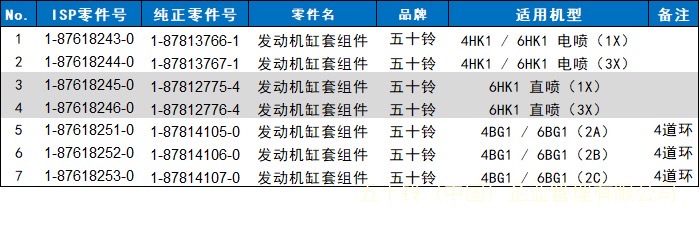 新品缸套组件火热订购中,购买详情请垂询五十铃(中国)企业管理有限公司旗下7家零件特约代理店。(公众号中有联系方式)